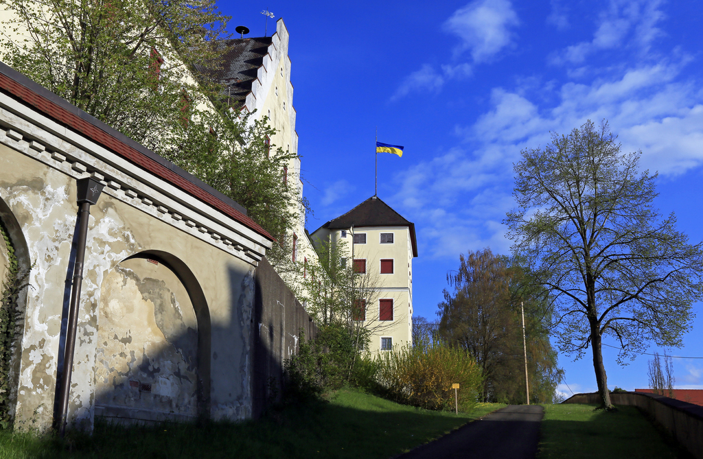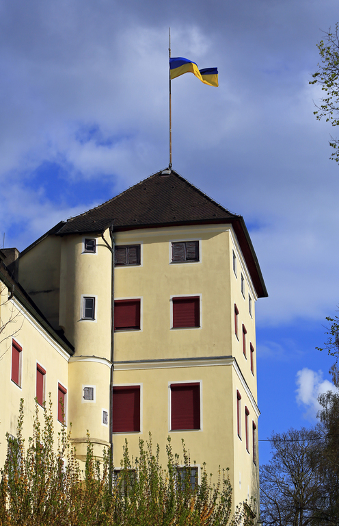 Прапор України майорить над родовим замком сім'ї Фуггерів у баварському